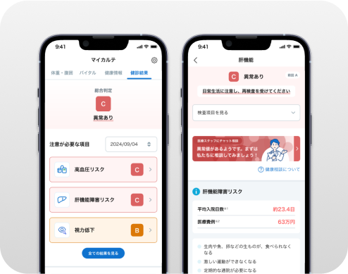 健康診断結果をいつでも手元のアプリで確認でき、自身の状態にあったアドバイスを通じて健康への意識を高めます。
